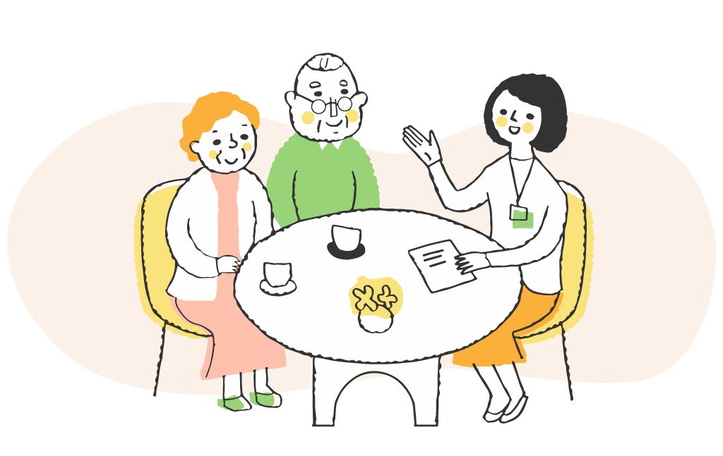 利用者様と老人ホームの見学日程調整を行います。事前に老人ホームと情報共有をさせていただき、見学当日は弊社のアドバイザーが同行いたします。初めての施設見学でも、アドバイザーが同席するため、安心して見学していただくことができます。